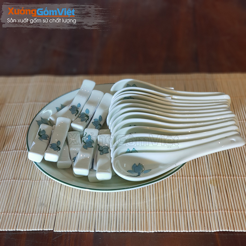 Bộ bát đĩa in logo được sản xuất tại Xưởng Gốm Việt