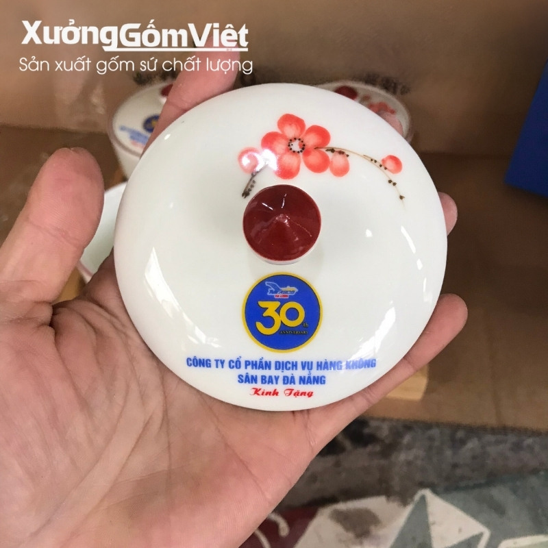 Bộ khay mứt quà tặng kỷ niệm 30 năm cho Công ty DV Hàng không Sân bay Đà Nẵng: Nhân dịp kỷ niệm 30 năm thành lập, công ty đã đặt hàng 435 bộ khay mứt gồm 4 hũ tròn vẽ hoa đào nhẹ nhàng. Logo kỷ niệm 30 năm được in trên nắp sản phẩm và hộp quà tặng, là món quà tri ân ý nghĩa dành cho cán bộ nhân viên.