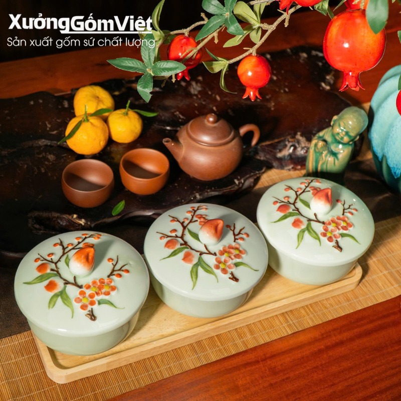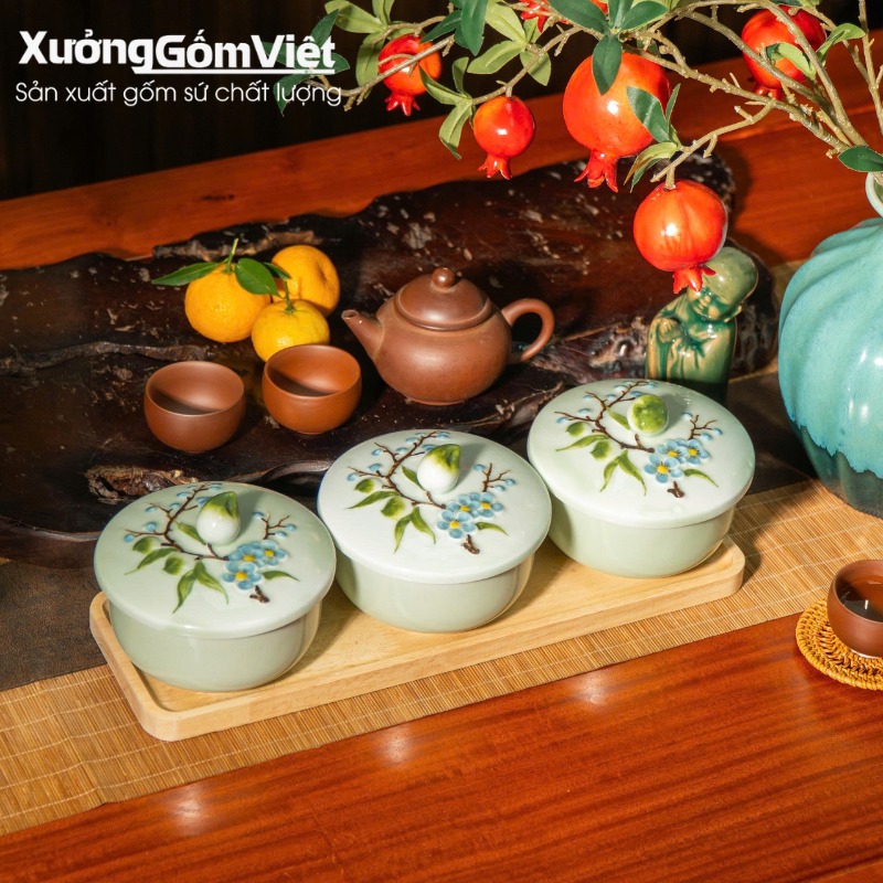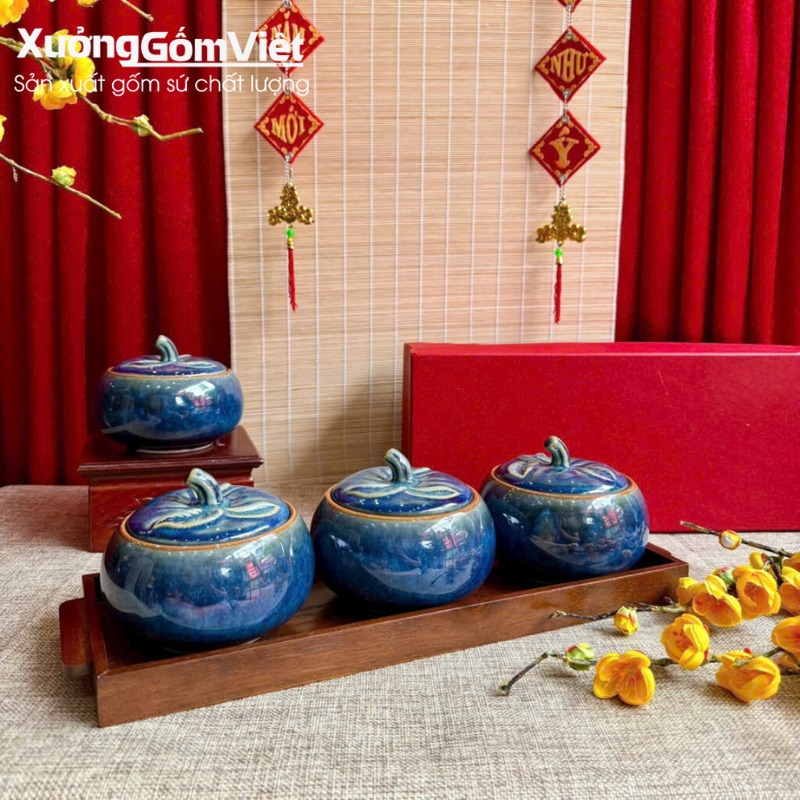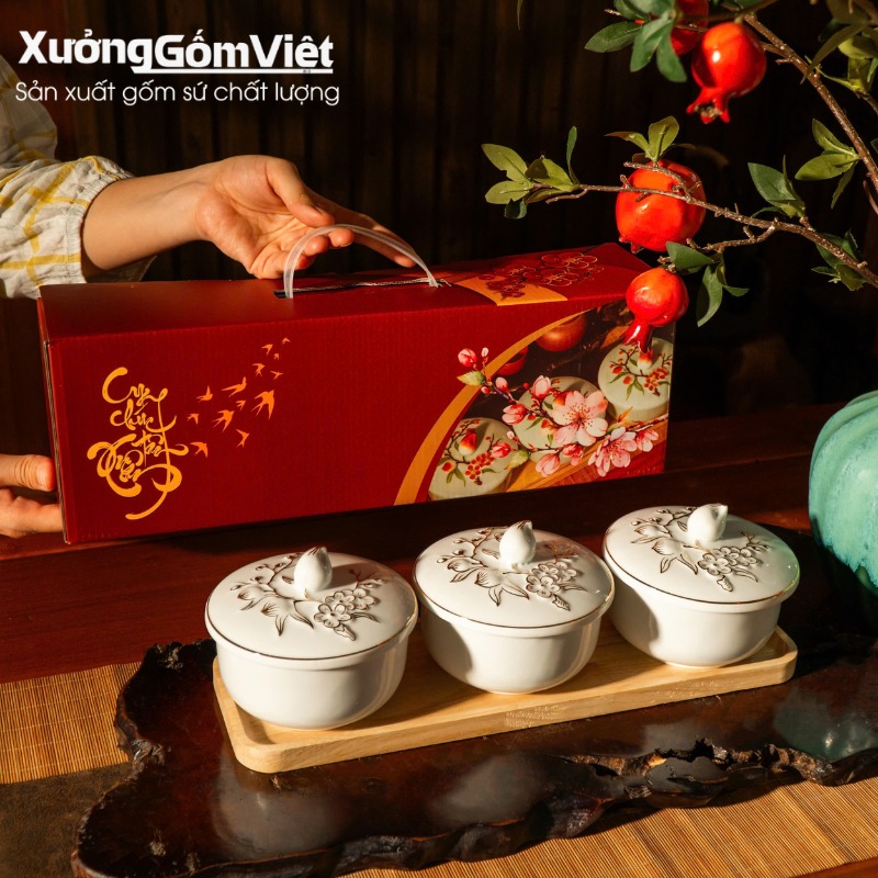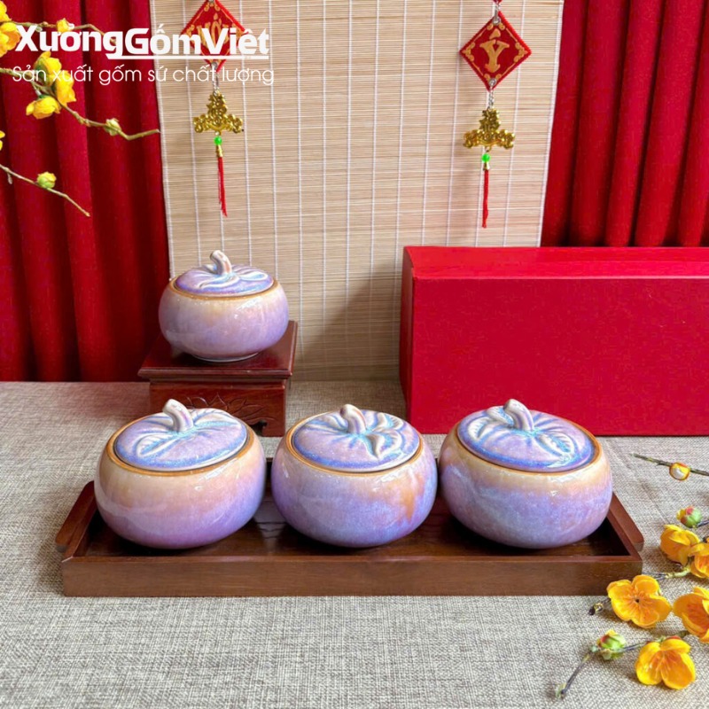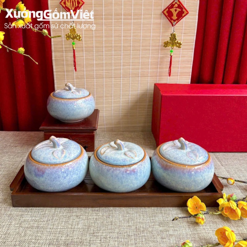 Cận cảnh mẫu bộ 3 hũ mứt sứ mới nhất tại Xưởng Gốm Việt dành cho dịp Tết Bính Ngọ 2026