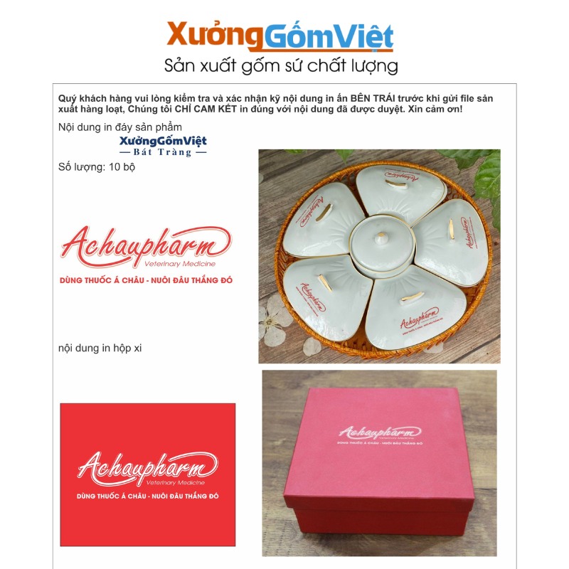 In logo và hộp đựng cho khay mứt sứ Bát Tràng tại Xưởng Gốm Việt