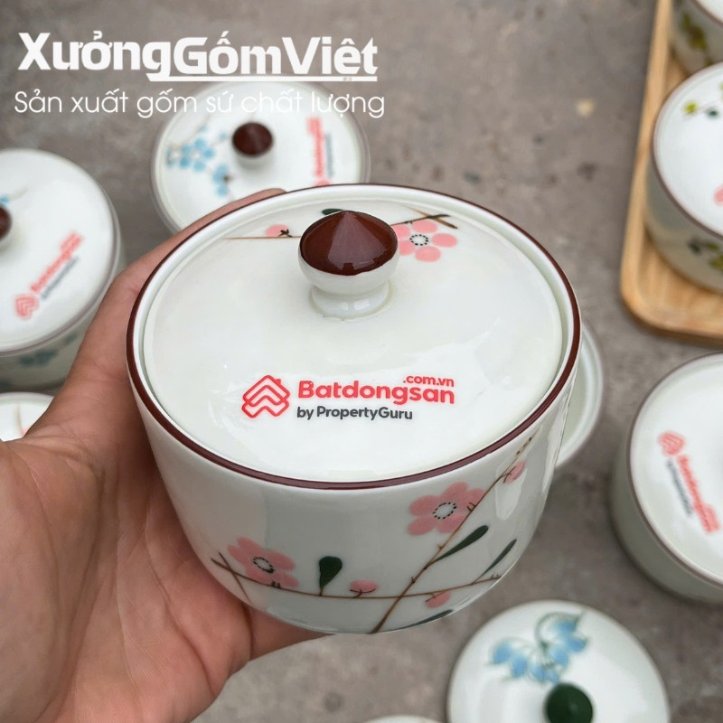 Dịch vụ của chúng tôi cho phép doanh nghiệp tùy chỉnh toàn diện từ kiểu dáng sản phẩm, kích thước, số lượng hũ đựng cho đến màu sắc men gốm. Hơn nữa, các họa tiết vẽ tay cũng được thực hiện theo chủ đề hoặc bộ nhận diện thương hiệu, tạo nên một bộ quà tặng độc quyền không thể nhầm lẫn.