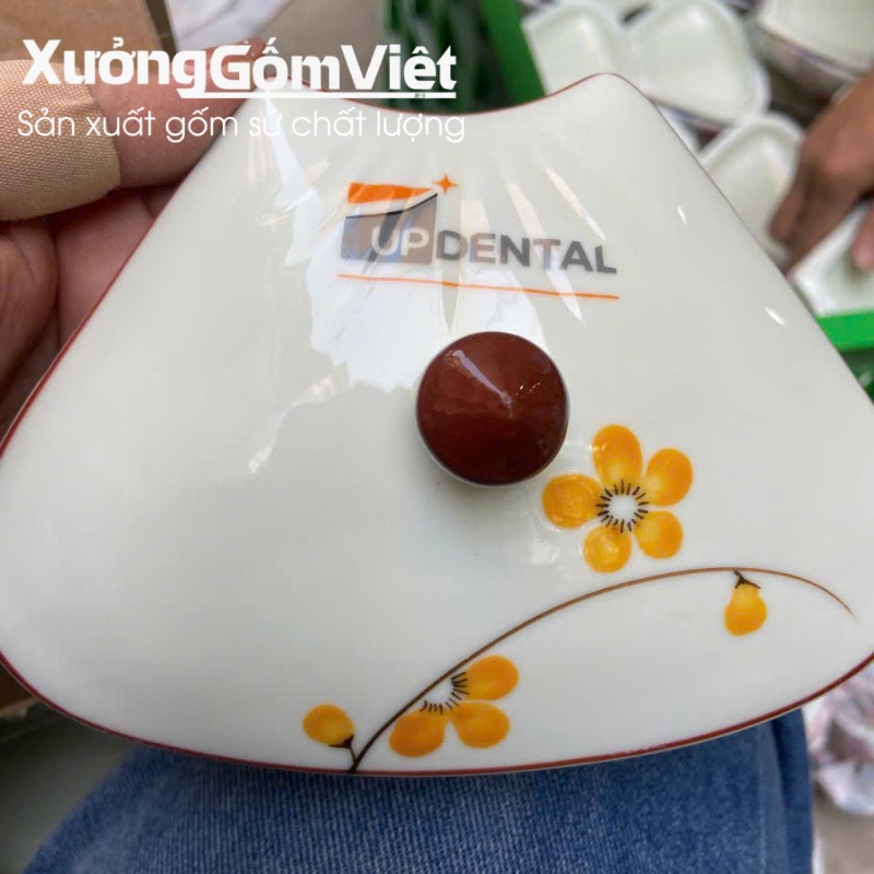 Đơn hàng khay mứt in logo sản xuất số lượng lớn tại Xưởng Gốm Việt